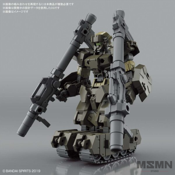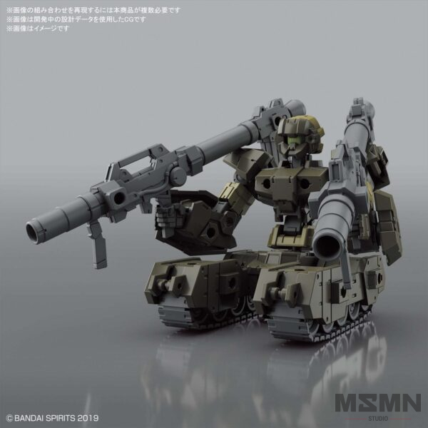 The eEXM-17 Alto (Ground Type ver.) returns to the 30MM series in a new brown shade! The Alto can transform into a tank, and includes new equipment such as a backpack for land warfare. A customizable bazooka is also included, as well as additional parts that can be equipped on Porta Nove. Build your Alto as-is with its included parts, or create your own original machine by mixing parts with other, separately sold 30MM kits!