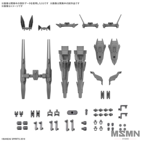 Arm your “30MM” (30 Minutes Missions) figures with the latest in flight and weapon technology with this set! It includes leg boosters and shoulder armor, as well as a wireless weapon pack that can be attached using the included joint parts. Various head accessories that are ideal for customizing the Acerby units (sold separately) are also included. Order yours today!