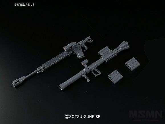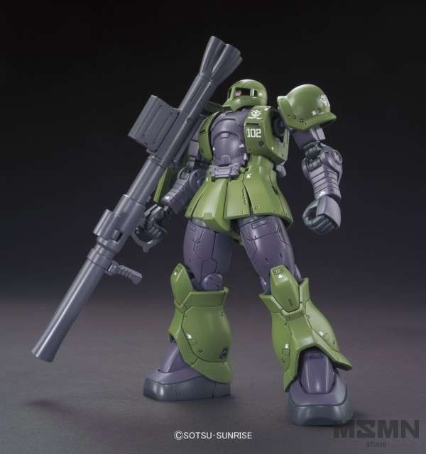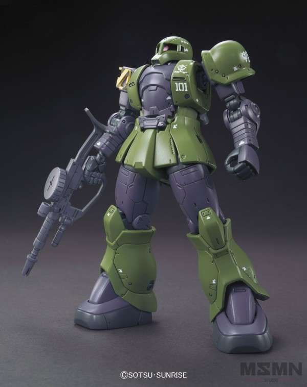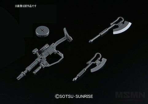 From “Gundam Origin” comes this High Grade Zaku I which can be built as either Denim’s unit or Slender’s unit. Slender’s unit sports the standard Zaku shield but Denim’s shoulder lacks the shield and different parts are provided. Weapons inlcude the Rifle, Bazooka, Machine Gun, and Heat Hawks. All parts come molded in multiple colors with stickers included to add color and markings.