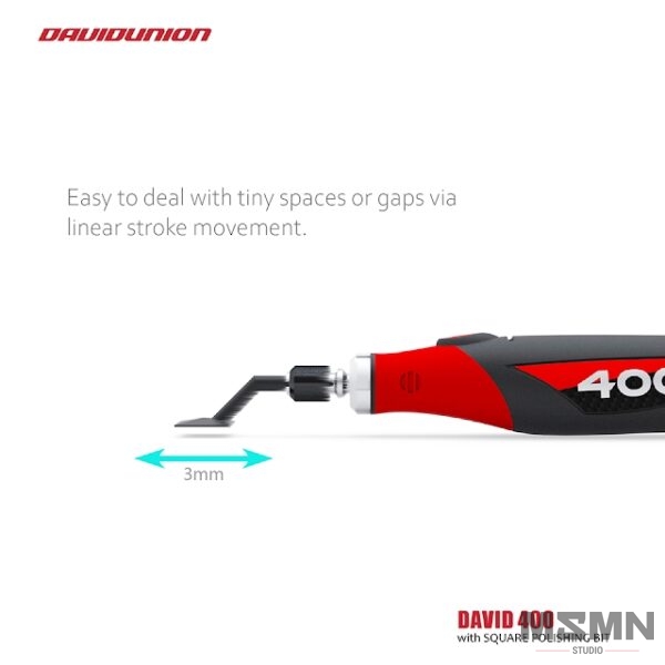 The DAVID 400, the first linear stroke sander in DAVID series, gives a complete solution to your craft and hobby activities. Ideal for working on surfaces in slots, recesses and narrow space, makes all the works you’re used to more convenient. With variable speed the DAVID 400 can be applied to any situation with perfect speed. The DAVID 400 also lets you work with your creativity in fun, various ways like polishing, cutting, or even engraving.