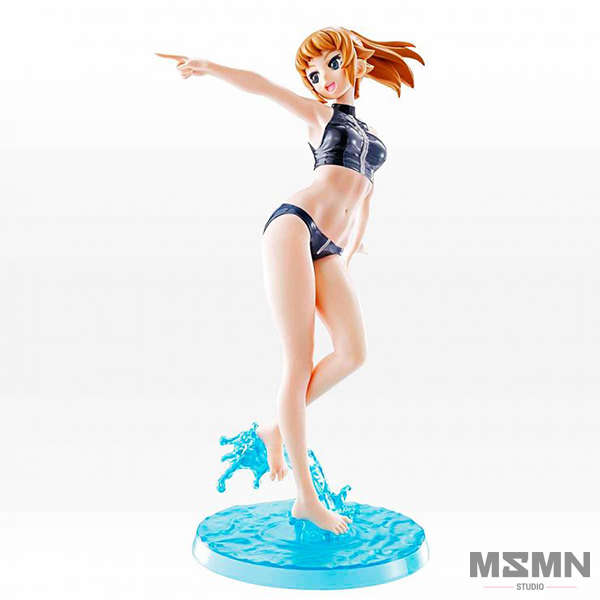 Further refining the process of layered injection technology, Bandai introduces their product line called Figure-rise LABO, featuring static models with visual detail that rival traditional PVC fixed posed figures and statues. The colors and shadows of Fumina’s soft skin are formed with the thickness of the plastic; the glossy enamel-like surface of her swimsuit offers a hard-surfaced contrast. Her base is a perfectly rendered splash of clear blue water.