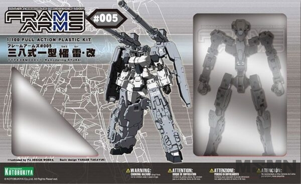 Part of Kotobukiya’s original plastic kit project “Frame Arms”, the Type 38 Model 1 Ryurai Kai comes as a fully posable plastic frame onto with you attach the included Plastic Model Parts. Armor and weapon parts come molded in color so no painting is required. Parts from mecha kits in the same series can be attached to the highly-articulated body frame or you can make your own custom parts for use on the frame as well. Interchangeable hands are included with parts molded on plastic sprues so some minor assembly is required. Compatible with Kotobukiya’s Modeling Support Goods series of kits. Includes exploded-view pictorial-type instructions, with Japanese text.