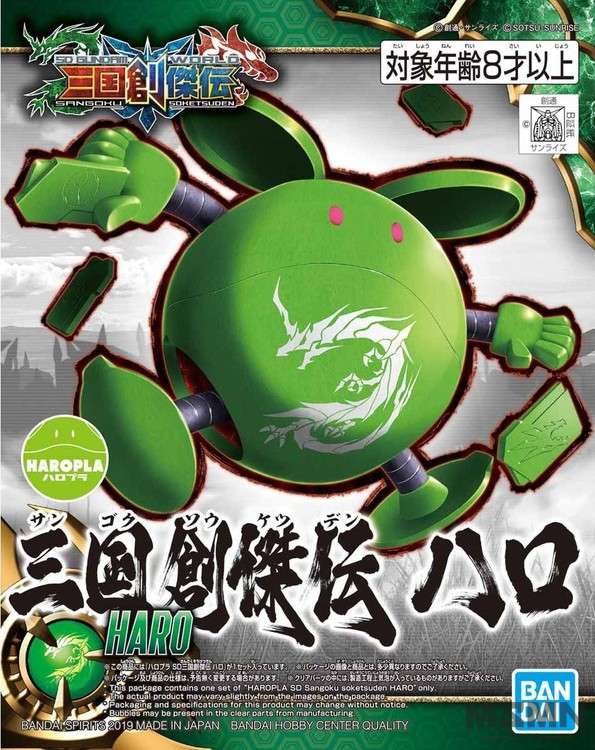 From the anime series SD Gundam World Sangoku Soketsuden the Haro is a small friend of Liu Bei that follows him around. This model kit includes new hands, and can hold the “Memory” objects as well as storage in its display stand.