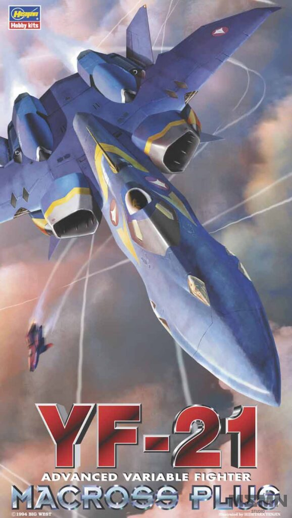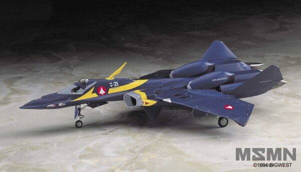 Hasegawa adds the all-too-cool YF-21 from Macross Plus to their ever-growing collection of superb plastic model kits from Macross. Hasegawa’s skills as a tooler of great aircraft kits are on full display here — the kit’s engineering keeps the number of parts relatively low, and panel detail and other features are sharply molded. Requires cement to build, but it’s molded in blue plastic and decals are included for all non-blue portions of the marking scheme. Can be completed with the canopy open or closed.