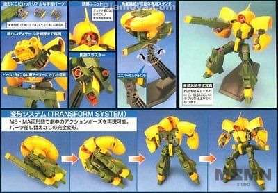 The best thing about this disturbingly orange and green mecha is the fact that when it’s completed, it can transform from Mobile Suit mode to Mobile Armour mode. A custom display stand for showing it off is included as well. All parts snap together and are molded in colour; polycaps ensure smooth-moving joints. Foil stickers for details are included.