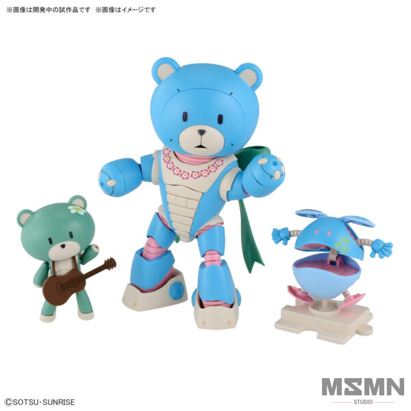 As seen in the “Gundam Build Series” 10th anniversary video “Gundam Build Metaverse,” the cute mascot characters Beargguy Ohana, Petitgguy, and Aloharo are now an HG model kit from Bandai! Beargguy Ohana’s face parts and arms can be replaced; his ears and mouth can be moved to add expressiveness. Special attachment joints are included so that Beargguy Ohana and Petittgguy can hold hands, or ride piggyback! Joints and grips for customization are included too, so you can use items sold separately to create your own weapons! Tropical marking stickers are included too. This fun set is a wonderful addition to your collection — place your order today!