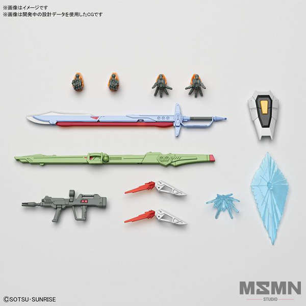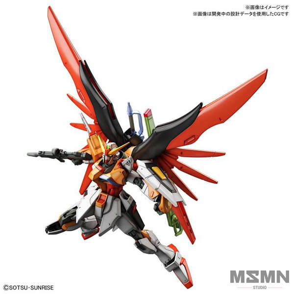 The double joint built into the torso allows you to reproduce the characteristic anterior flexion action, and the side armor slides backward to avoid interference with the legs, with a structure that doesn’t limit the range of motion. The “”Wing of light,”” the symbol of Destiny Gundam, has been recreated with clear parts, along with the beam affect for the Palma Fiocina. An Arondight beam sword, high energy long range beam gun, beam boomerang and other armaments are also included!”