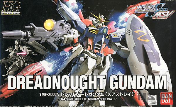 The Dreadnought Gundam is a hot Mobile Suits Variation, based on Gundam SEED designs (specifically the Astray). This 1/144-scale HG model reproduces this fantastic Mobile Suit in super detail, with its distinctive, gigantic red backpack! Bandai’s multi-gate molding technology allows multiple colors to be blown on a single sprue, keeping the number of sprues to a minimum (keeping costs lower, and the savings are passed on to you!). And since all the parts are molded in color, you don’t need to paint the kit; since they all snap together for assembly, you don’t need to glue it, either! Polycaps are included for joints, so the finished product can be posed easily. Lots of sharp customised foil and clear stickers are included for a superb finish. Don’t miss out on a fantastic variant of a popular mecha!
