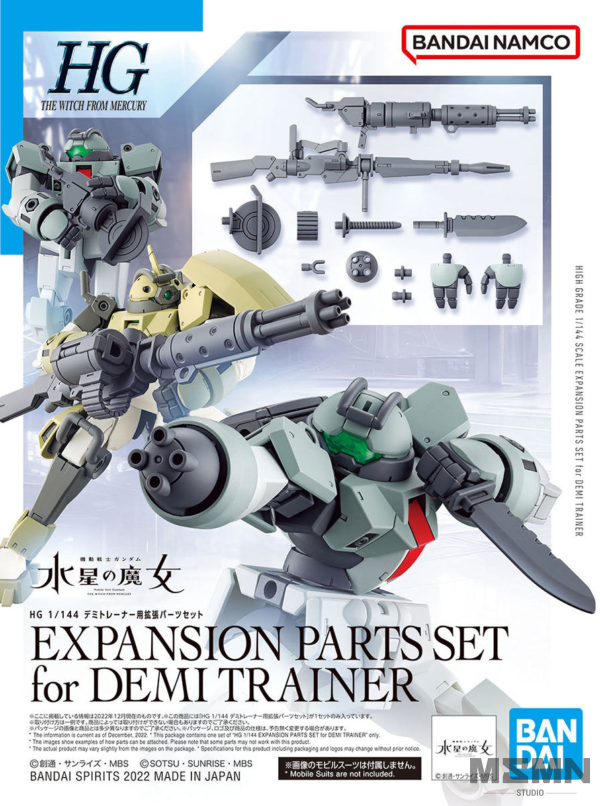 This expansion parts set allows you to customize the HG 1/144-scale Demi Trainer from “Mobile Suit Gundam: The Witch of Mercury”! The set includes various weapons, from large guns to a close-contact combat knife; the large armaments can also be mounted to the Demi Trainer’s arms. Flat hand parts are also included. Order yours today!