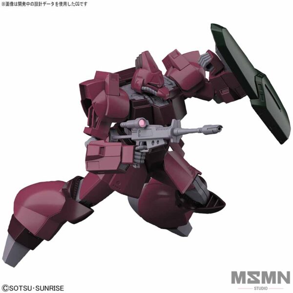 This kit includes a newly-molded version of the Gelgoog rifle, and features a sliding gimmick for the shield.