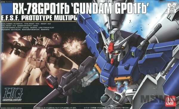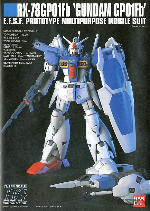 HG version of the GP01Fb. Molded in Bandai’s patented multi-gate technology that allows multiple colors on one tree. Core fighter is removable. Includes shield and beam rifle. Rocket thrusters are posable.
