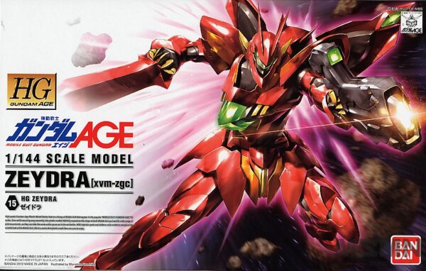 here’s another unique looking Gundam AGE High Grade kit from Bandai. Simliar to the Gafran and Zedas (linked below), the Zeydra has a look all its own with that bright red, orange, and yellow armor. He also boasts those clawed hands with Beam Vulcans in the palms and the Zeydra gun as weapons.