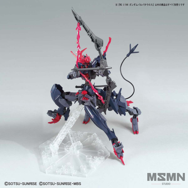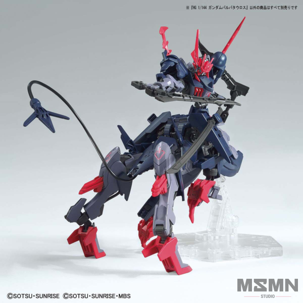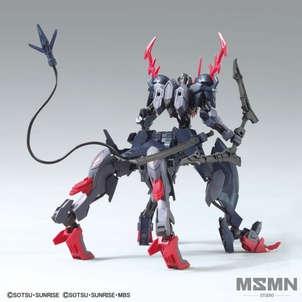 Gundam Barbataurus is a bold combination of Gundam Barbatos and a centaur! Its twin blades can transform into a handgun mode, and they can also be combined and reassembled into a large bow; Gundam Barbataurus can show off its superior posability by getting into the classic bow-pulling pose! The tail blade at the rear of its centaur form uses lead wires for posability, too, and a sword similar to that wielded by Gundam Barbatos is included. Order this amazing new Gundam for your own collection now!