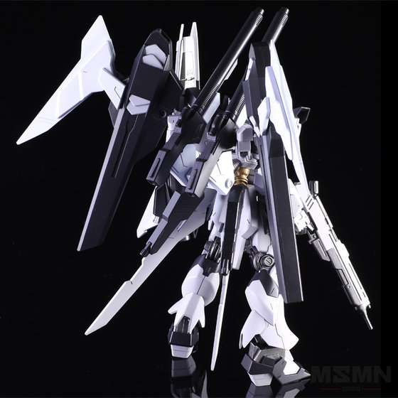 The body of the MS is reproduced with black molding parts, and the various grey tones give a different impression from the Hi-v Gundam Vrabe. The head, with blade antennas and face in different form, is reproduced in new design.