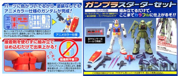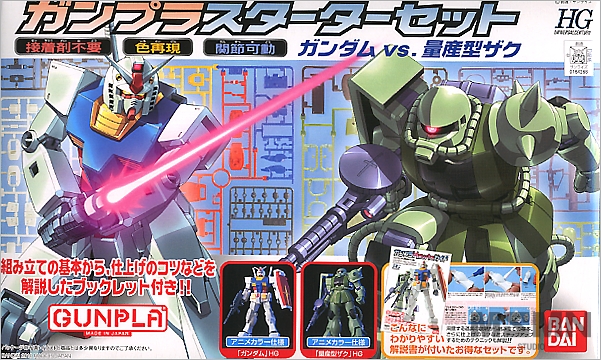 The Gunpla Starter set is perfect for those looking to get into the world of Gundam Plastic Models, times two! With this set you get to build the HGUC RX-78-2 Gundam and the Zaku II. Both kits come molded in color and utilize poly-caps for joints. Also included in this set is a How-to Guide showing you what tools you need, how to properly remove the parts from the runners, and details the assembly. The guide also has a section showing you how to ‘Step Up’ your gunpla through the use of glue and markers.