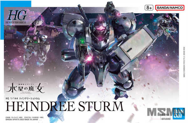 The Heindree Sturm, a combat mobile suit made by Grassley Defense Systems in “Mobile Suit Gundam: The Witch from Mercury,” is now a 1/144-scale HG model kit from Bandai! Ball joints at its neck and waist allow natural forward-and-backward tilting poses; it’s equipped with a movable special weapon on its back. It also has a special shield on its left arm, which is equipped with a structure enabling it to be turned to the front. Order yours today!
