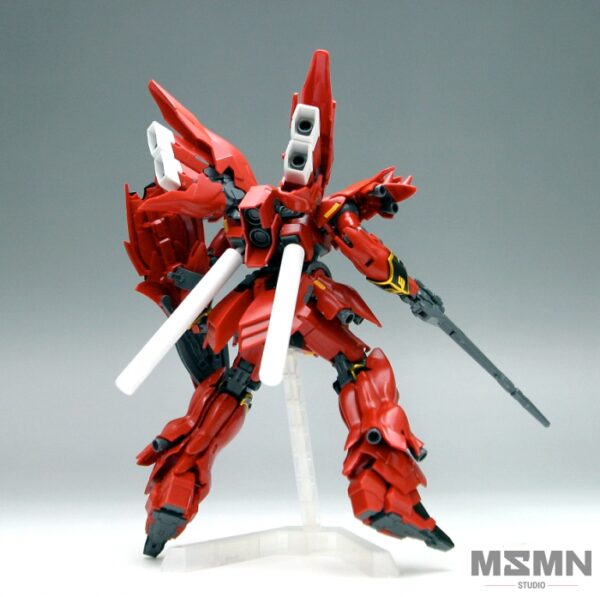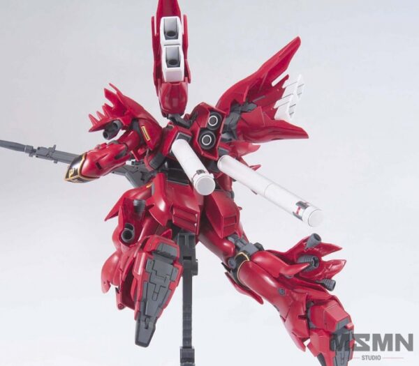 An HGUC Sinanju! Bandai has created magic by bringing you the Sinanju, previously available only in a 1/100 scale Master Grade kit, as a 1/144 scale High Grade kit! This special HGUC has many of the same features which made the MG Version so special such as movable thrusters on the legs and backpack, a Grenade Launcher which attaches to the Beam Rifle or shield, and Beam Axes that can be attached to the shield. As well, Bandai has included an extra set of hands molded in fist-clenching form. The MG doesn’t even have that! Bandai has also taken care of the gold trim for you with a set of gold foil stickers. Snap fit assembly, no glue required.
