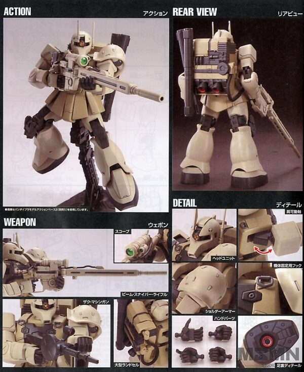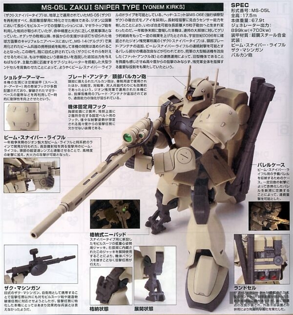 Here comes another version of the Zaku I Sniper Type this time in the colors found in Gundam UC as piloted by Yonem Kirks. Watch out Gundam Unicorn, there are a sniper’s crosshairs on you!