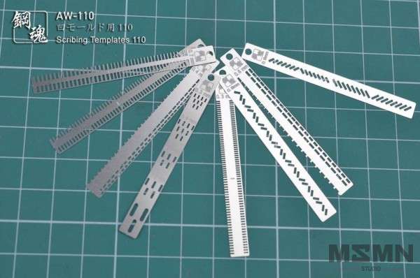Madworks Photo Etched Scribing templates for scribing plastic models. Make your own custom panel lines and details on your plastic model kit with these handy tools!