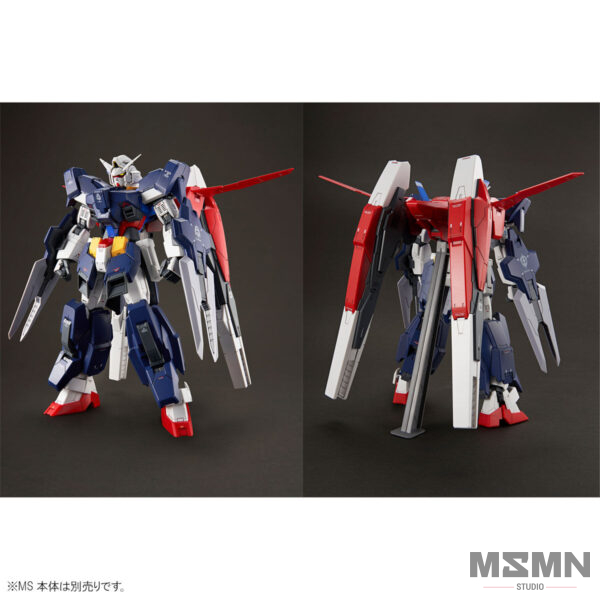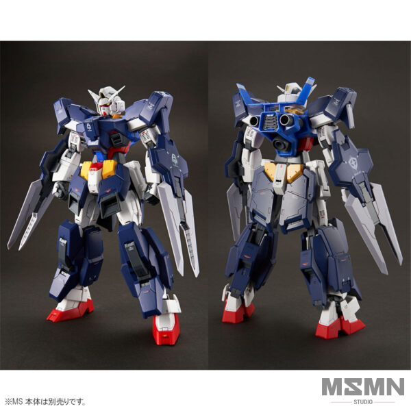 The kit comes with completely newly molded parts to expand the sold separately MG 1/100 Gundam AGE-1 kit. Completed with Gundam AGE-1 Flat extension parts, and of course, with the Full Glansa equipment set including the Glastron (Zefuld) Launcher pack which can be used as its backpack and as an extended flight and weapon system.