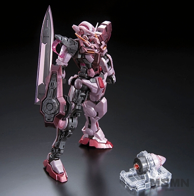 Its complete Seven Sword System are provided that consists of a GN Long Blade, a GN Short Blade, two GN Beam Daggers, two GN Beam Sabers, a GN Sword that can switch between rifle mode and gun mode, plus a GN Shield with sides that can slide out. A dedicated clear base is also included for displaying the detachable GN Drive, and a red cover part can be attached to the back of Gundam Exia in place of the GN Drive. Two same-scale figures of Setsuna in standing and sitting poses are packed in the set along with foil stickers, dry transfer stickers, and MG Gundam Exia original marking stickers for detail. Four button batteries are required, not included