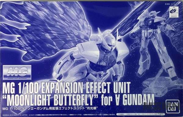 The kit includes high quality Moonlight Butterfly Wings effect part for both Turn A Gundam and Turn X. It also packed with a clear action base 1!