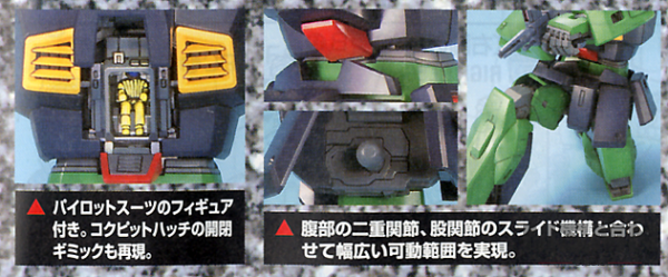 Nice, brightly-green mass-production mobile suit from Zeta Gundam, in a Master Grade form. Builds up nicely with an articulated inner frame over which you lay the armour bits, which is standard for Master Grade kits. Weapons are included as well; a beam rifle, two beam sabres, and a shield. Dry transfer decals and clear Gundam stickers are included for markings; polycaps make the joints movable. All parts are molded in colour and feature snap assembly, so glue and paint are not required.