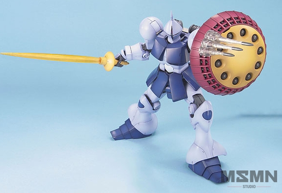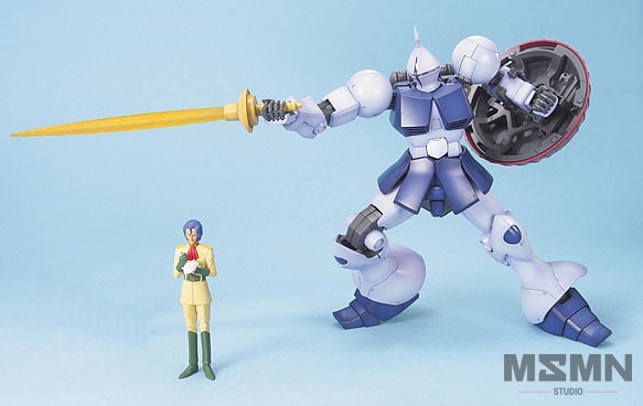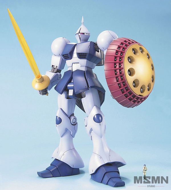 Um, yay! A Master Grade… Gyan. Well, though the Gundam mopped the proverbial floor with it in the series, the MG kit itself is actually pretty impressive. Featuring the version 2.0 frame designed by Bandai, the kit also comes with a gimmicky beam sabre that will light up with an LED (powered by a watch-type battery, not included), plus the shield, hide bomb, and all the other Gyan armament — including a 1/20 scale unpainted figure of M’Quve.