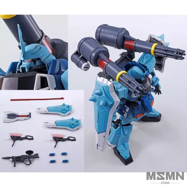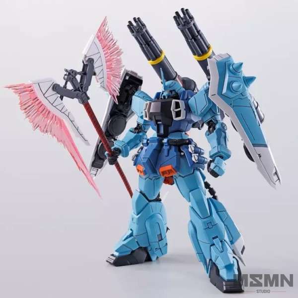 Its body shares the same mold with the previously released Lunamaria’s Gunner Zaku Warrior with added parts. Its MA-MR Falx G7 Beam Axe has given a mechanism gimmick for it to transform into 2 different modes. It also has a deactivated gimmick that can be mounted on its back skirt armor! Each beam effects of the Axe are molded in clear pink plastic with pointy features.