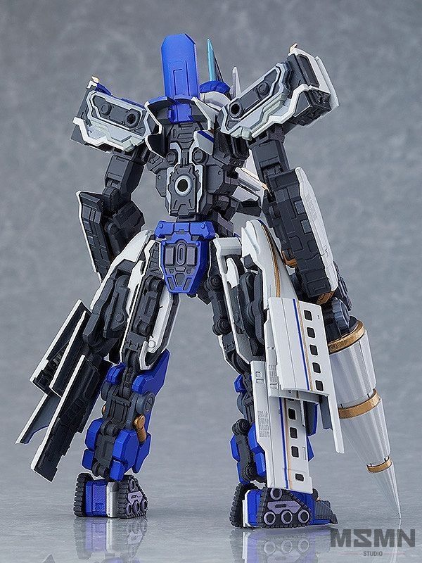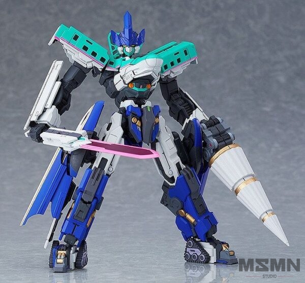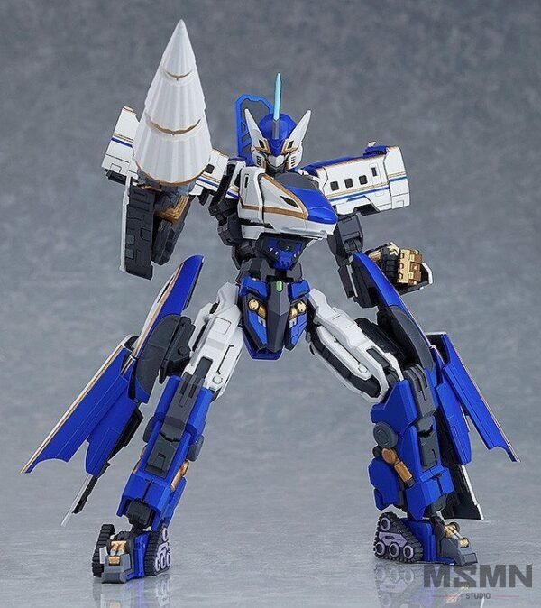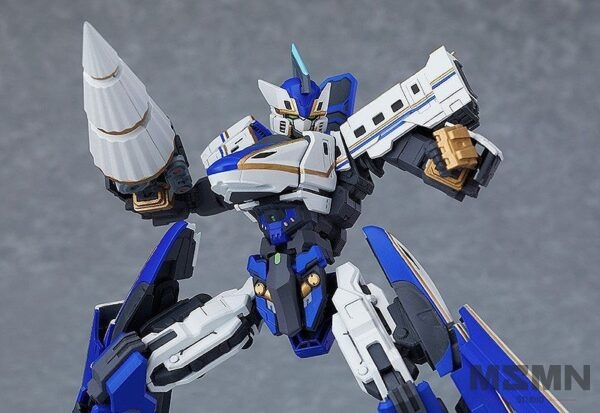 The model kit is made of PS and ABS plastic and features runners separated into four colors (blue, white, grey and gold). Some parts are pre-painted and decals are included, so all it takes s a simple assembly to recreate the mecha from the series.