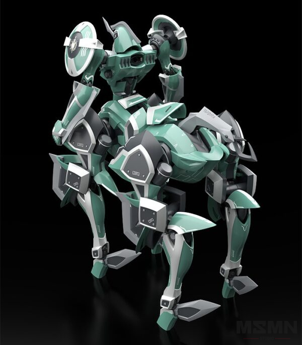 The mecha’s four legs and round shield equipped shoulders are all fully articulated.