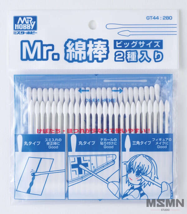 This swab has a large cotton part, which is optimum for decal attachment or dirt painting on large sized kits.