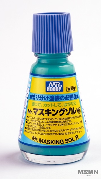 Mr.Masking Sol R contains a new formulation which can be readily applied, cut, and removed after use. This product has the same characteristics as the previous Mr.Masking Sol M131, which is no longer manufactured. It is a water-soluble product, so when it thickens during usage, you can thin it out with tap water for extended use.