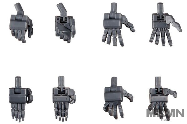 The Modeling Support Goods series from Kotobukiya has been providing your models all sorts of cool additional parts, weapons, and display pieces, and up next is a highly functional set of manipulator units for your robots in the NORMAL HAND NEO set! Neo brings you four sets of mechanical hands: weapon-holding, opened palm (used as is or to support gun-holding poses), opened palm with fingers together, and opened palm with fingers spread apart. Use the Normal Hand Neo in combination with other Modeling Support Goods parts and weapons from Kotobukiya for unlimited options in building, posing, and equipping your Frame Arms, Border Break, and other robot models!