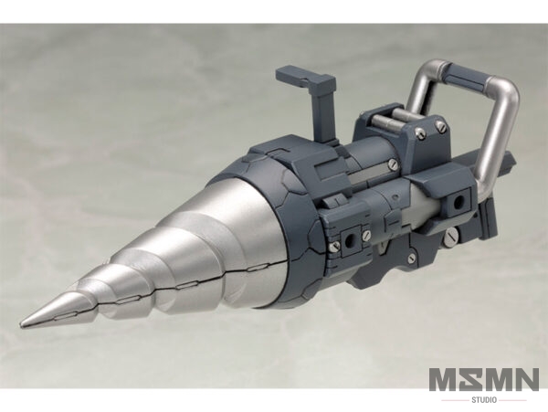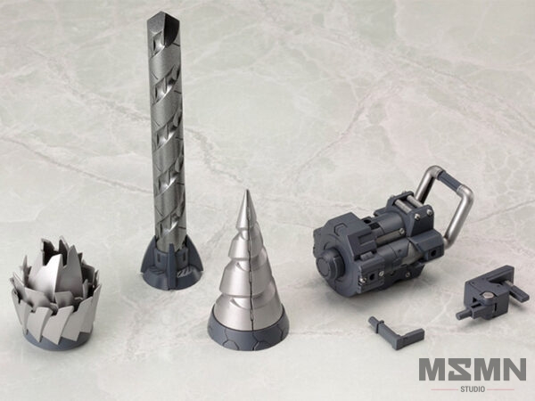 The Vortex Driver is a customizeable add-on weapon set as a fearsome melee weapon system with options for drill, driver, and cutter applications. The kit consists of 20 pieces that can be assembled into different configurations on its own as a unique weapon or as part of your robot models! Perfect for use with the Frame Arms series of customizable plastic kits, the Vortex Driver adds even more options when paired with others in the M.S.G. lineup.