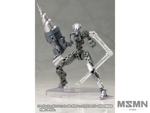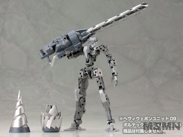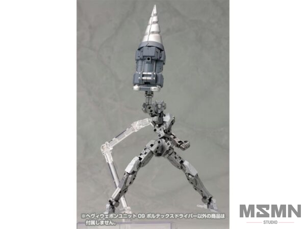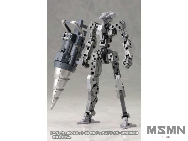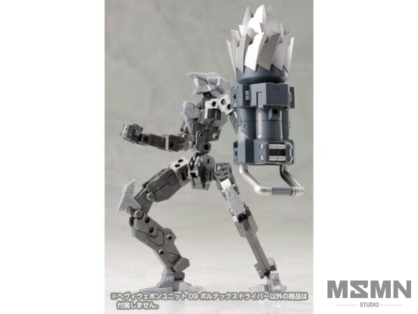 With this addition of the Heavy Weapons Unit 09 Vortrex Driver to the Modeling Support Goods model kit line, you can equip your Frame Arms robots and any other model kits in their scale like never before!