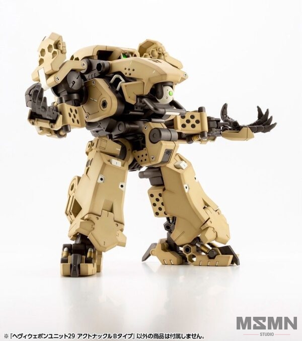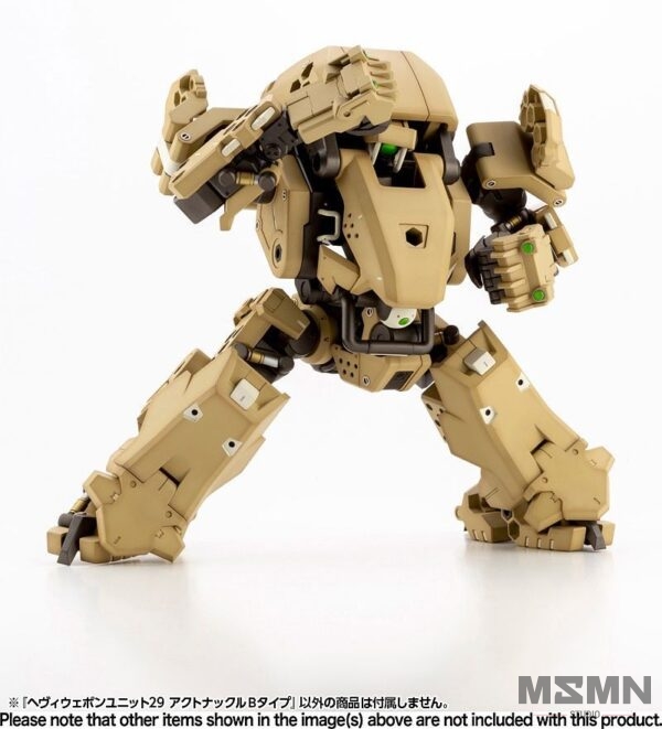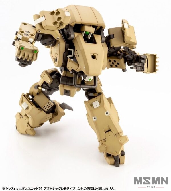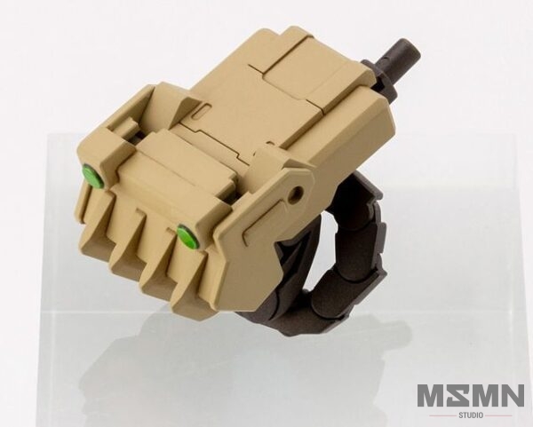 he Heavy Weapon Unit 29 Act Knuckle B Type is an add-on for your Hexa Gear Bulk Arm series kits, and also for your Frame Arms kits! This powerful mechanical hand features full movement in all five fingers; the Type B comes with a normal back and a combat back that adds protection to the fist. Two types of fingertips are also included: a rugged square shape and a pointed claw. It’s molded in gunmetal gray and desert yellow. Order yours today!