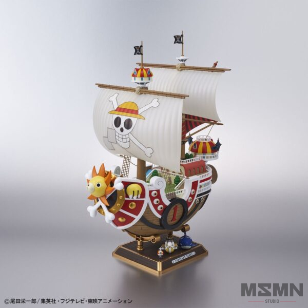 Here’s an amazing kit of the Thousand Sunny, as seen in the Wano Country arc of “One Piece”! Figures of the Straw Hat Pirates in their new outfits are included, and the cannon and paddle can be reproduced through parts replacement. Seals and water-transfer decals are included to reproduce the damage the Thousand Sunny had incurred when she entered the Wano Country, and in-scale mini models of the Shiromokuba No. 1, Mini Merry No. 2, and Shark Submerge No. 3 are also included. An exclusive display base is also included. Join the adventure and order this kit today!