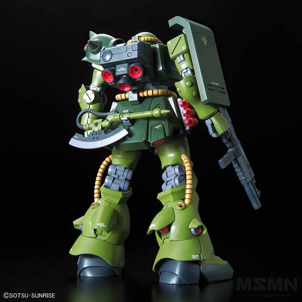 This is the first kit in the RE/100 series to be produced without the use of PC parts, and is instead made with KPS to make assembly easier than ever. In addition to its normal head, it also comes with parts to recreate the commander type helmet as well as the Fritz helmet. The Zaku II Kai comes equipped with an MMP-80 machine gun, heat hawk, and hand grenades, which can be stored at its waist.”