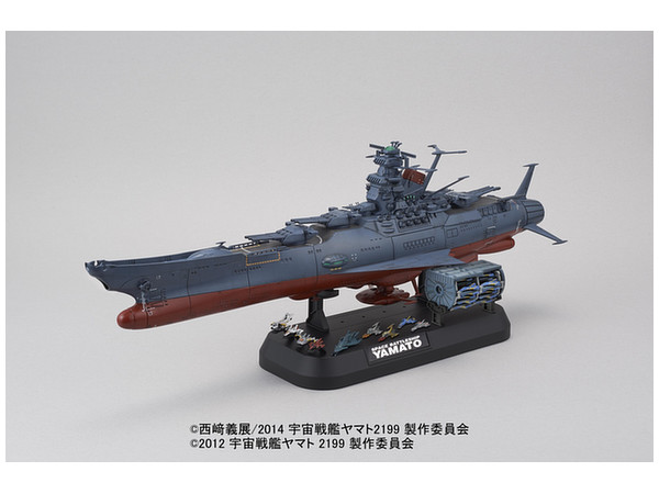 Reissue with new parts included for the Hadou-hou bow cannon, hull wing parts, and the little ships (in 1/1000 scale…) shown in the image. Includes decals and illustrated instructions.