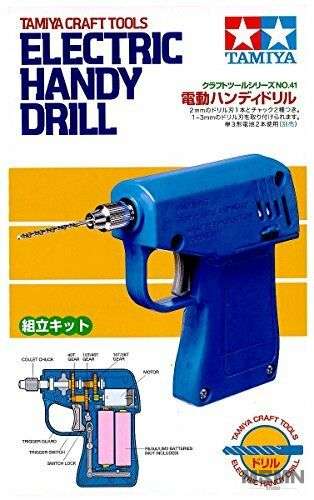 An easy-to-assemble, battery-driven drill that’s powerful enough for simple work on plastic and wood. Turns at about 450rpm. 2mm drill bit included. Features a collet chuck that can handle 1mm-3mm bits.
