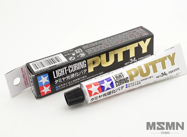 The Light-Curing Putty will cure in approx. 1 minute when exposed to direct sunlight, or in approx. 2 minutes under fluorescent light (27W).